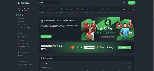Sportsbet.ioで事前ベットによりベットする場合、はじめにSportsbet.ioの公式サイトにアクセスしてログインします。